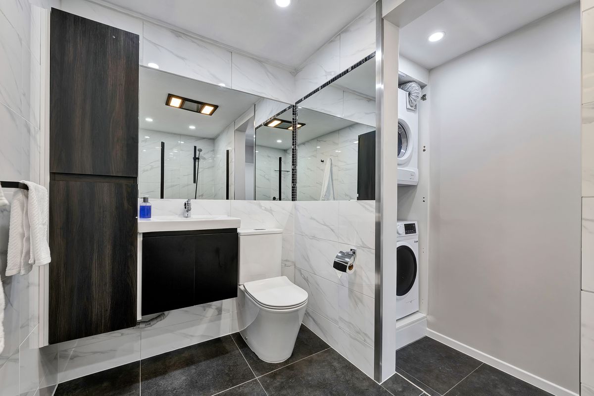 Luxurious bathroom: Fully tiled with a spacious walk-in shower, large mirrors, and a touch of modern elegance.