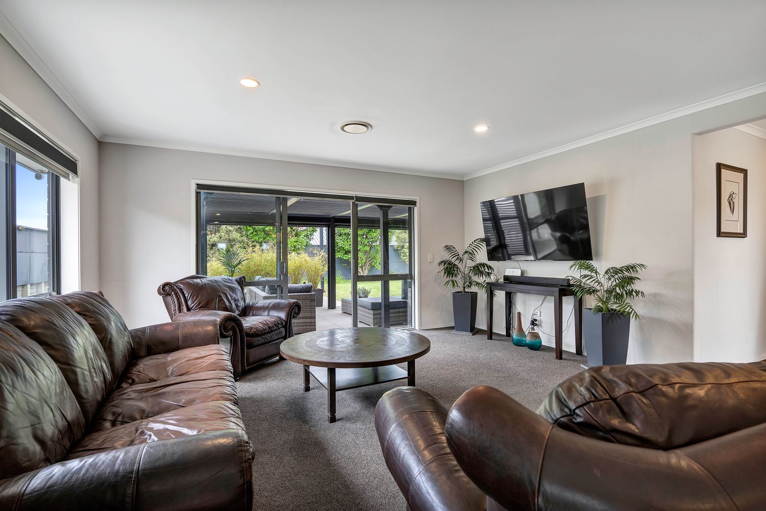 The flat, fenced 741 sqm section suits outdoor play, with a half basketball court and lawn ready for kids. The double internal-access garage includes extra room for bikes and gear, and a third separate garage is perfect for the golf cart with Ngamotu Golf Course nearby.