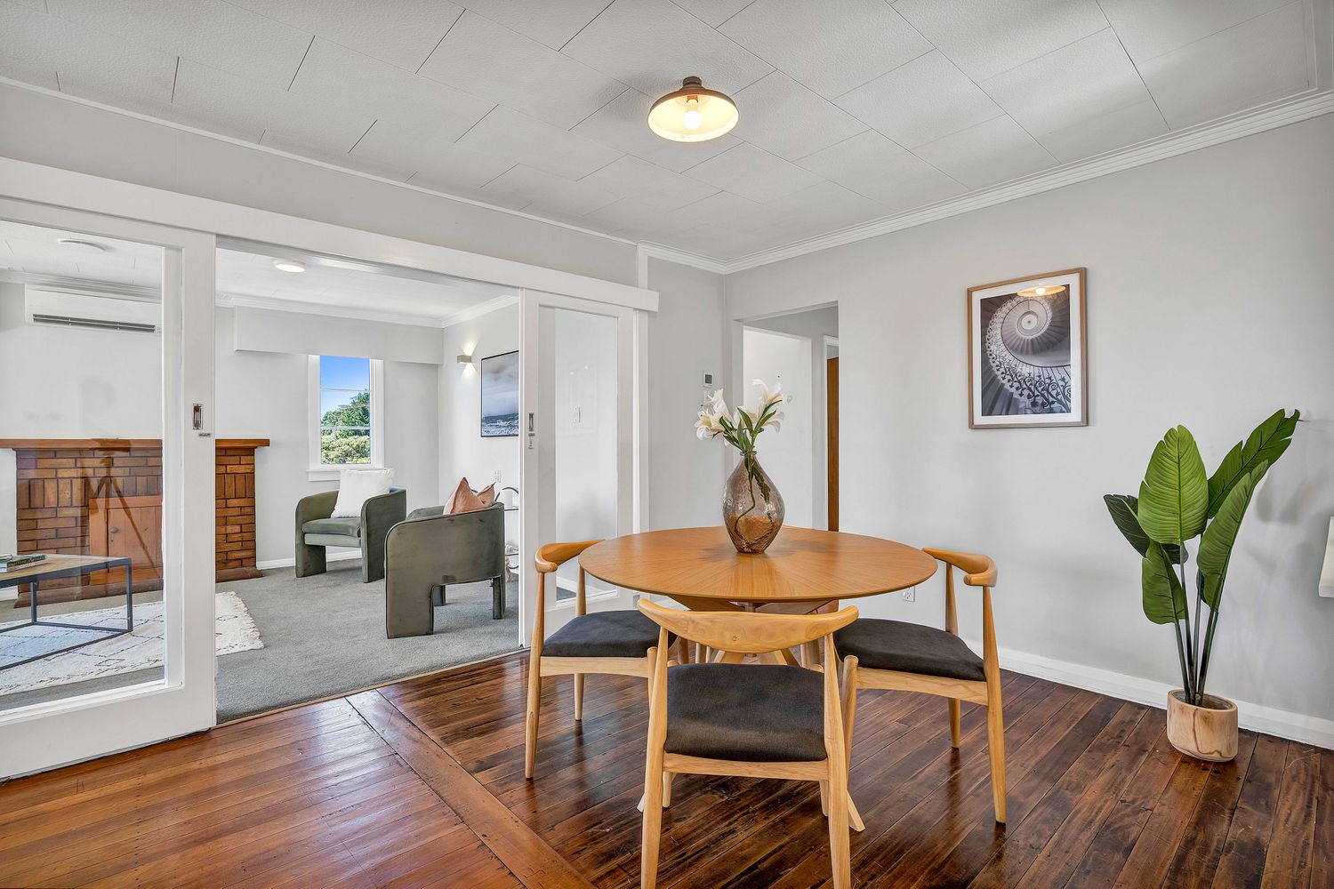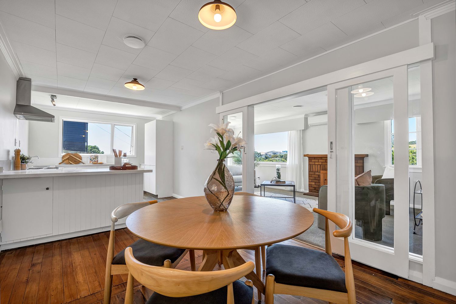 Step through to light, bright interiors where neutral tones create a calm backdrop for your own style. The generous kitchen provides excellent storage and bench space, ideal for keen cooks, and flows easily into the dining area, where warm wooden flooring adds character and a welcoming feel. From here, the living room connects through glass sliding doors, giving you the option of open-plan living or a more separate retreat. A heat pump ensures year-round comfort. Three bedrooms are serviced by a modern bathroom with large-format tiles, and a second toilet adds everyday convenience. A patio links the main home to a sizeable additional room and storage space, perfect for a home office, studio, gym or potential extra bedroom.