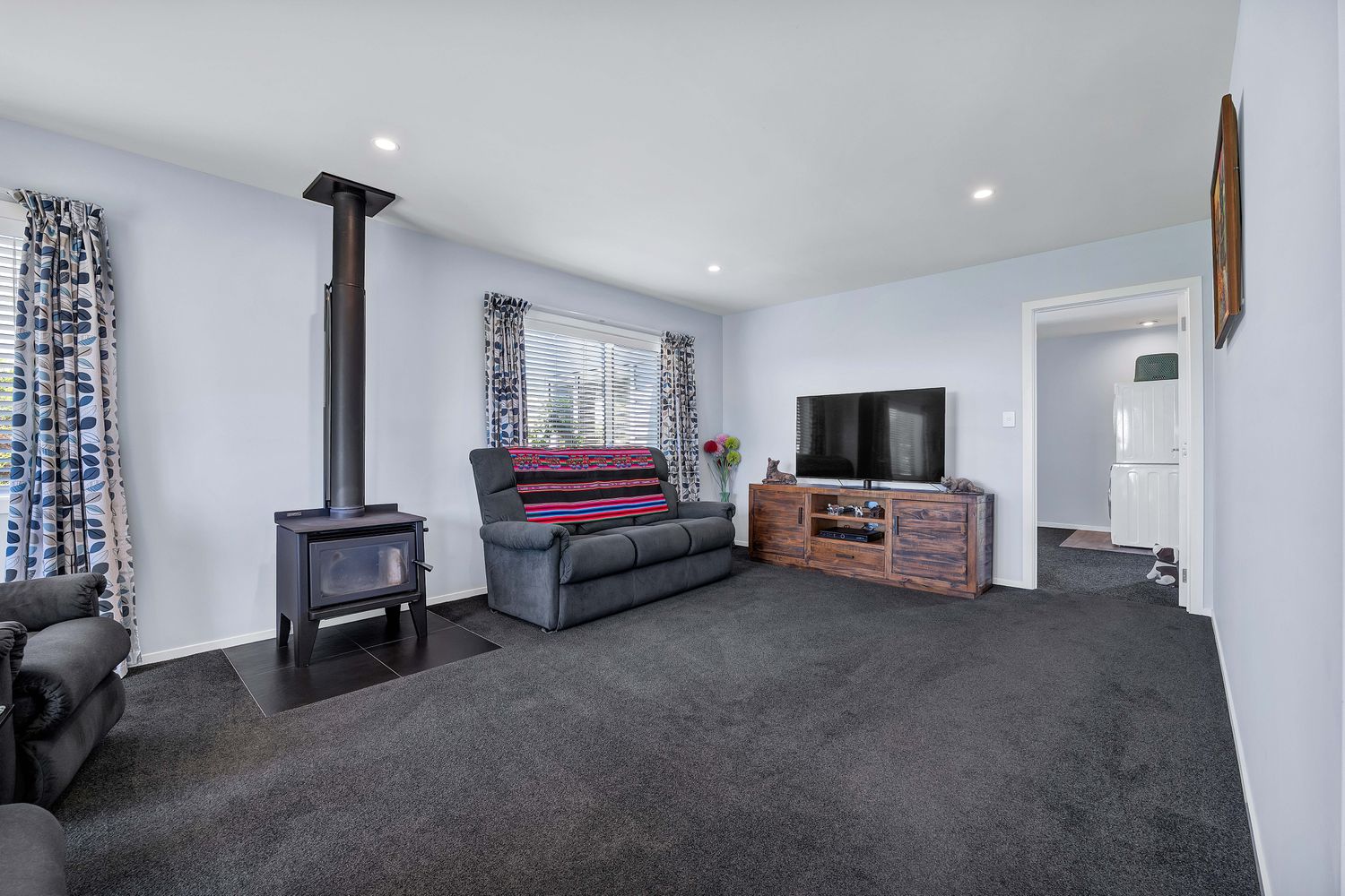 The modern home offers easy, low-fuss living with open-plan spaces, a wood burner and three bedrooms, including a main with ensuite and walk-through wardrobe.