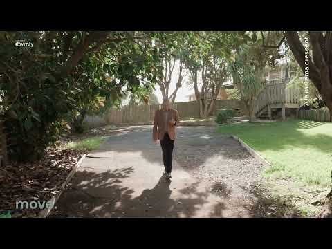 Outdoors, the sloping section is perfect for kids, with established trees providing shade, while the deck and porch create easy spaces to relax. A single garage sits beneath the home, along with off-street parking.