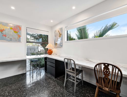 There are so many wonderful features here! Enjoy the fabulous near new contemporary kitchen complete with all the bells and whistles. The open-plan kitchen/living/dining spaces feature stunning timber floors; stacking doors create seamless flow from the separate lounge to the outdoor area. The separate laundry is an added bonus, while gas heating and insulation combine to ensure year-round comfort. Upstairs, there are three bedrooms (master with ensuite), and a well-appointed family bathroom. The master bedroom has a private balcony with views out over the trees, a sanctuary for quiet contemplation and relaxation. The new rumpus room, games room, family room, extra accommodation, call it what you will, is perfectly placed on the property and provides a seamless respectful flow to this wonderful character home.