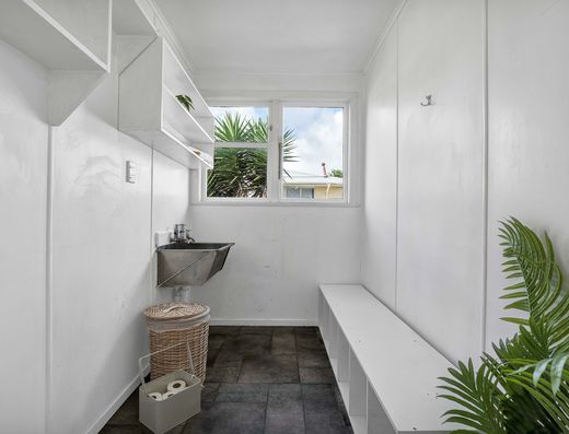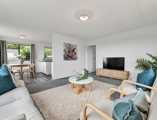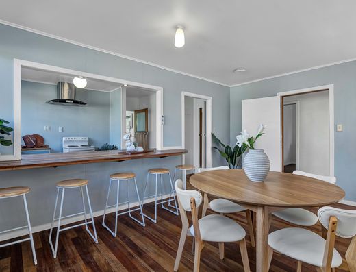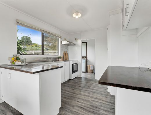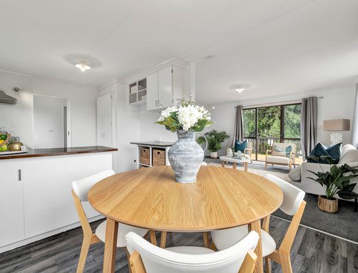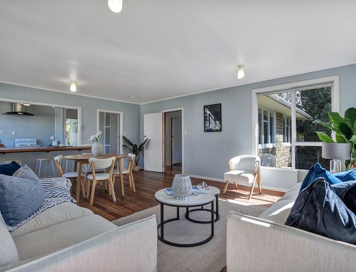 Featuring three bedrooms plus a compact sleepout which offers the ideal space for a teenage retreat or office. The open plan kitchen and dining has been designed for easy family living, opening out onto the balcony and covered deck that offers a stunning private space for hosting friends and al fresco dining. The spacious lounge has window seats offering the very best seat in the house to curl up with a book and a coffee and soak up the sun. Warmth all year round is ensured with the choice of a wood burner or heat pump to keep you cosy in winter.